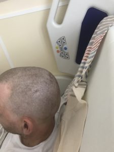 Nach den vier Tagen Chemotherapie wurde ein Ruhetag eingeschaltet. Ich war erstaunt, dass ich noch alle Haare auf dem Kopf hatte. Ging ich doch davon aus, dass mir während diesen vier Tagen alle Haare ausfallen würden. Doch nein, dem war nicht so. Heute wurde ich kahl rasiert. Ich dachte, dass vom heutigen Tag an, meine Haare wieder wachsen würden. Erst in der Schweiz merkte ich: Mir werden noch auch die restlichen Stoppel ausfallen und auch einen Monat nach dieser Kahlrasur wuchsen mir immer noch keine Bart- und Schnauzhaare mehr. So, dass ich mich – eigentlich ganz praktisch – noch während Wochen zu Hause nicht rasieren musste.