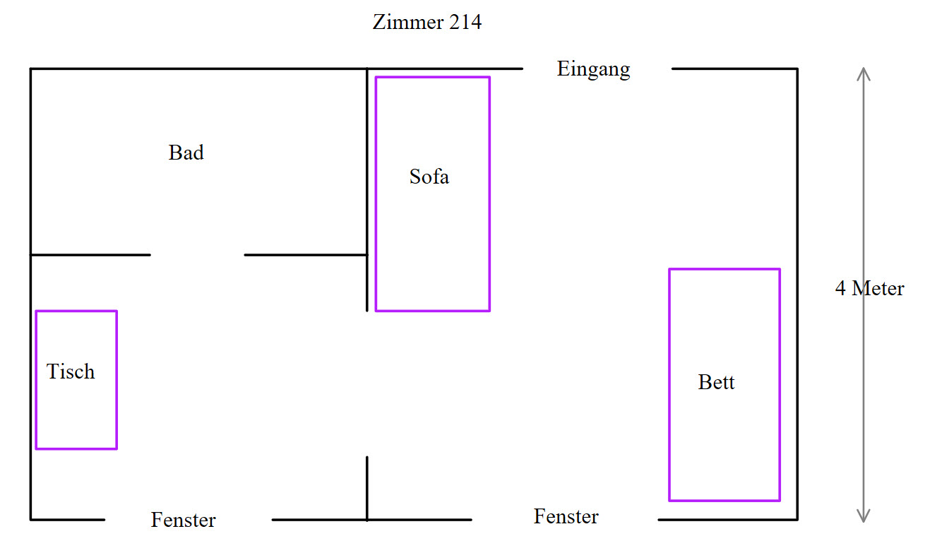 Zimmer 214 · normales Zimmer · Tag 1 – 9